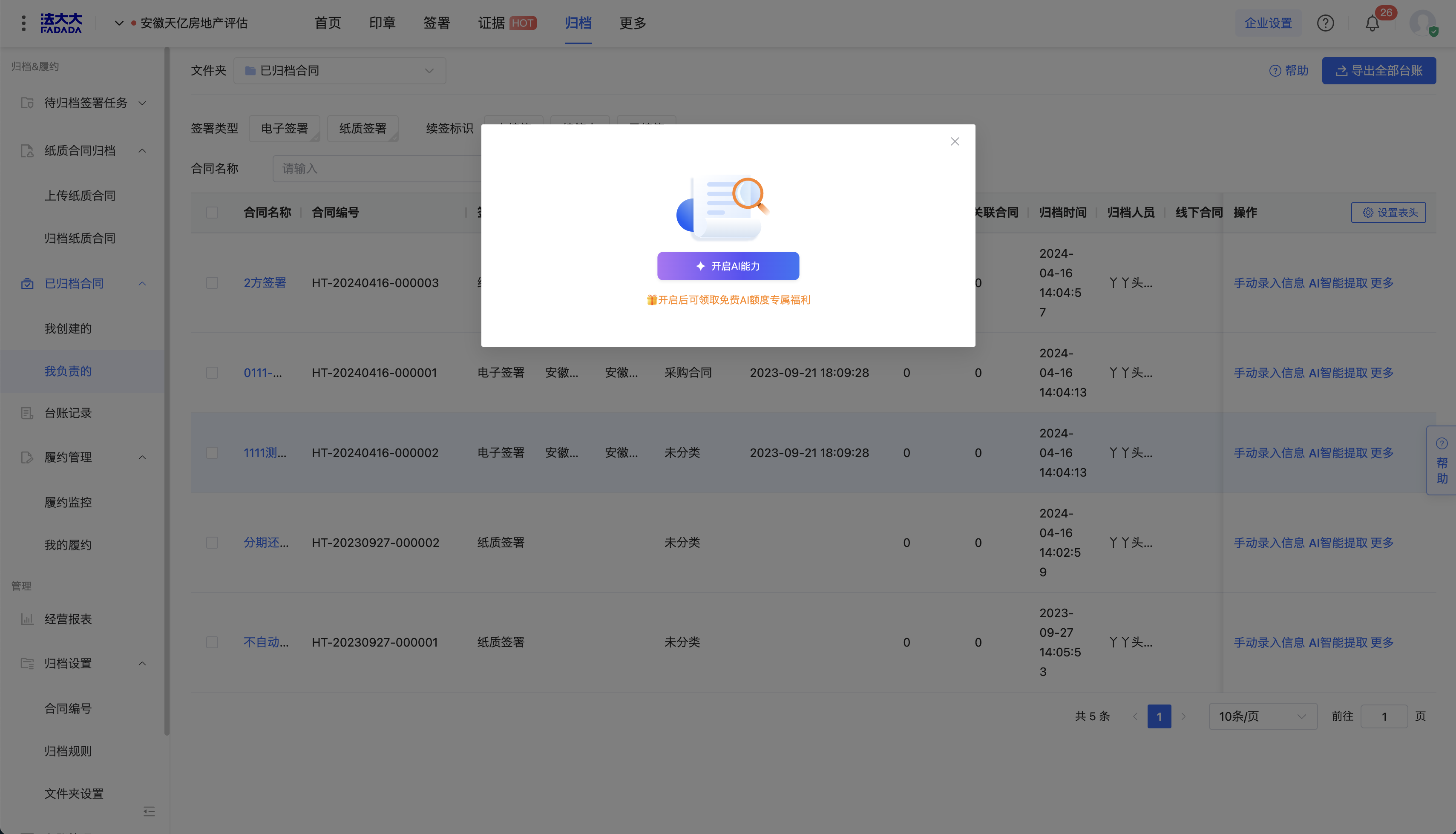 第一步,开通归档AI提取能力