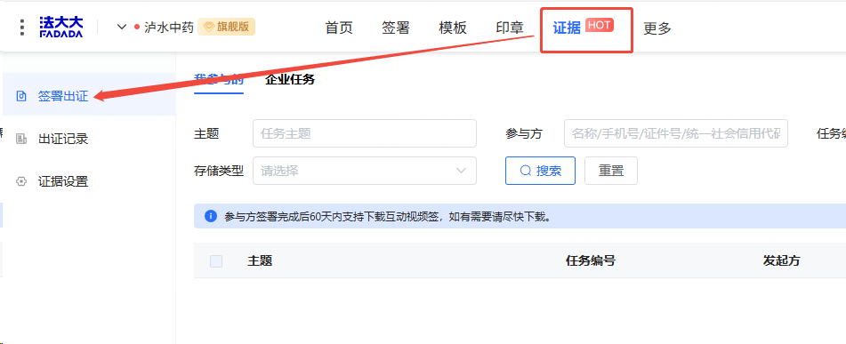 在官网-工作台:证据管理-【签署出证】列表可以找到签署内容,下载互动视频签视频,视频有有效期时间限制,具体见系统提示。