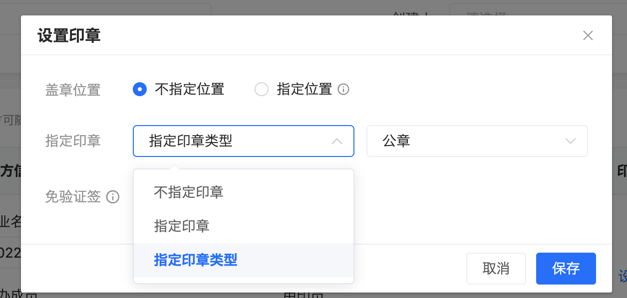 (2)自动化助手,企业参与方支持指定印章类型,指定后只能加盖该类型印章