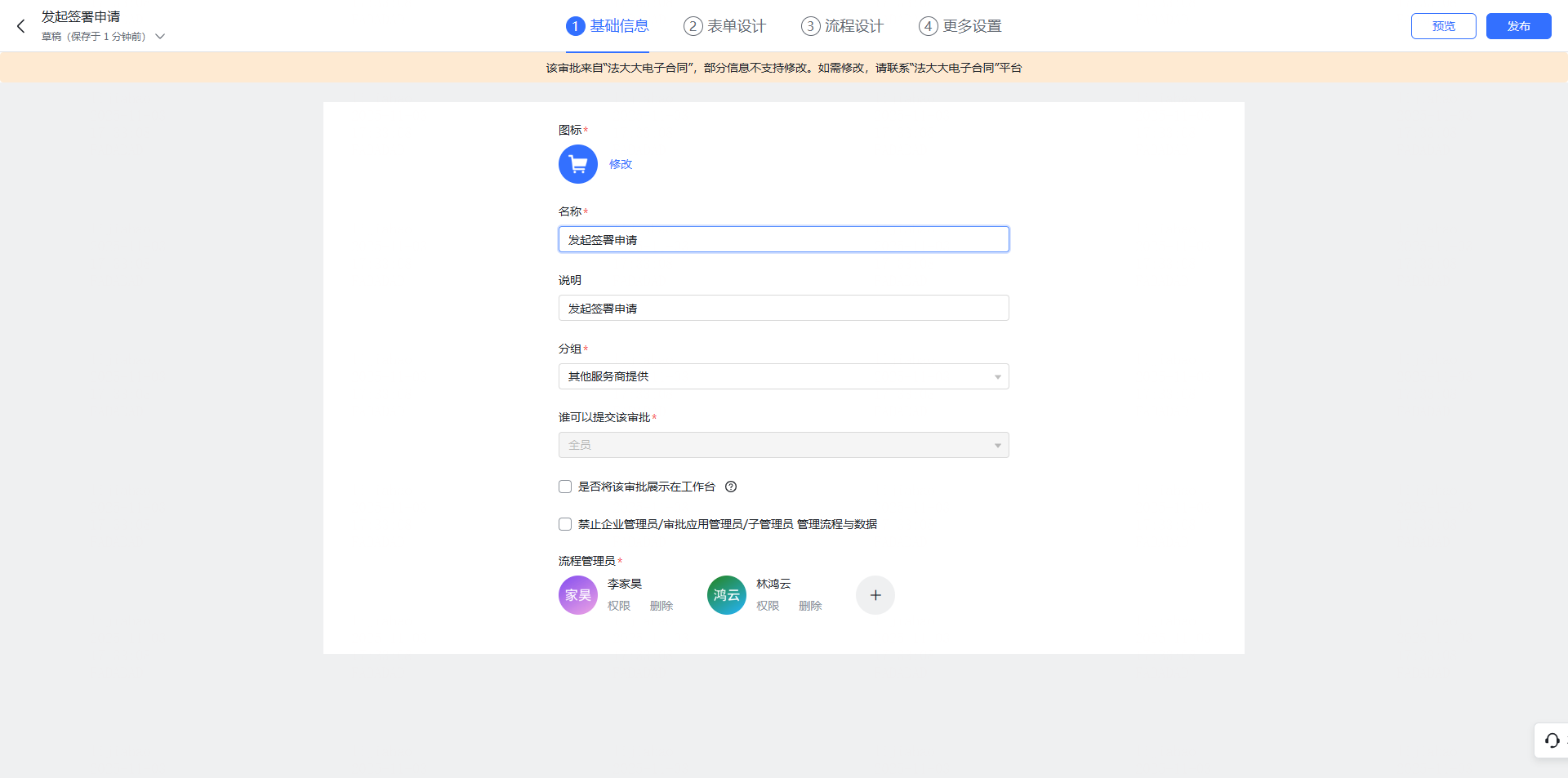 (1)审批编辑 — 基础信息 可自定义修改