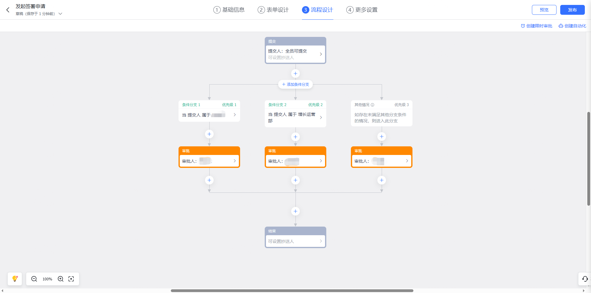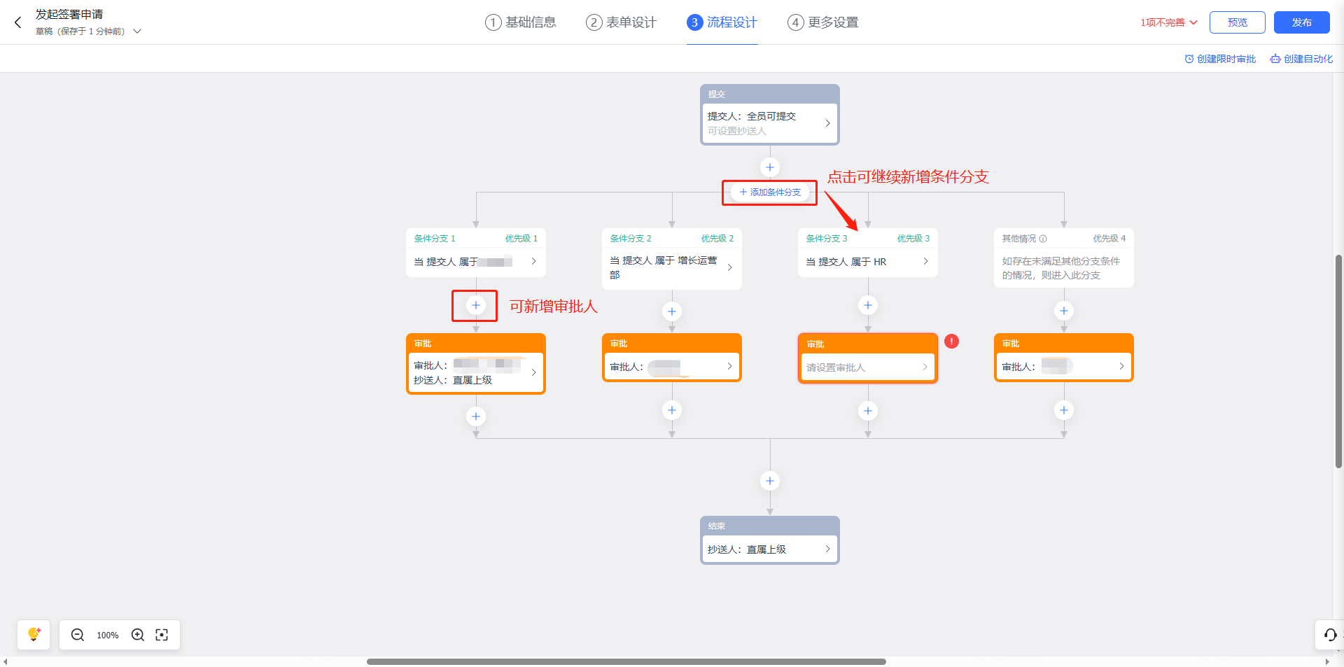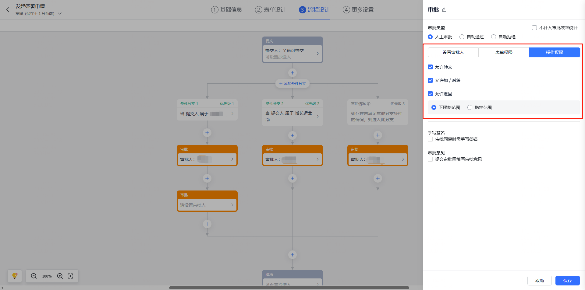 (3)审批编辑 — 流程设计 可根据实际业务情况自定义审批流程