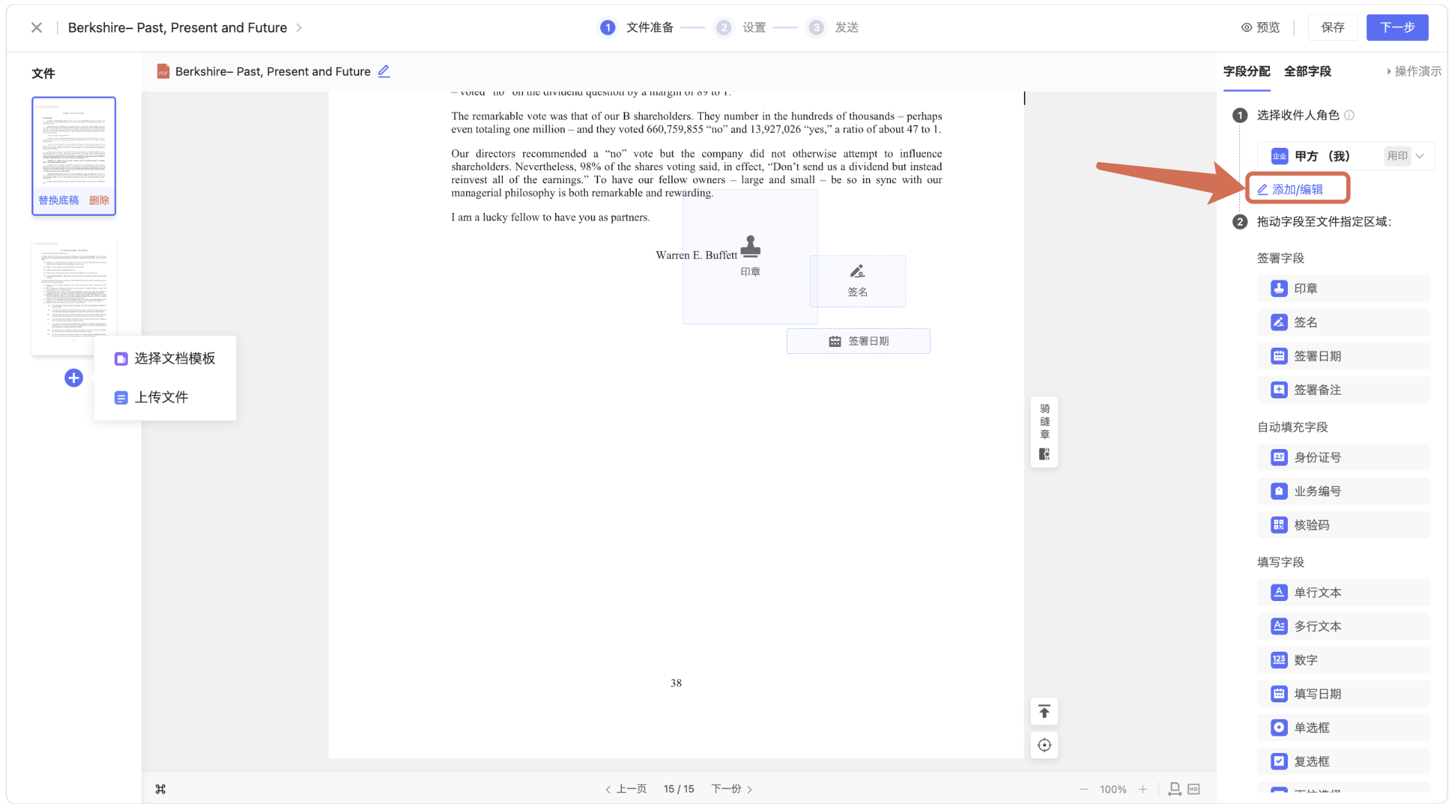 发起前预填写:发起前录入信息,该部分信息会自动填充至文件的指定区域;