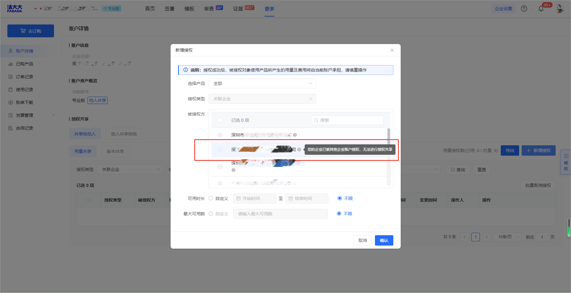 授权提示:您的企业已被其他企业账号授权,无法进行授权共享?