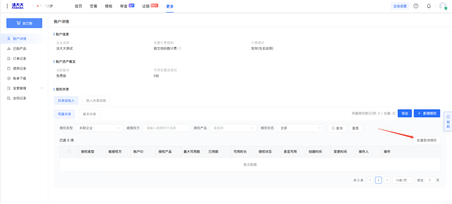 选择当前企业-更多-费用-账户详情里面取消所有用量共享即可