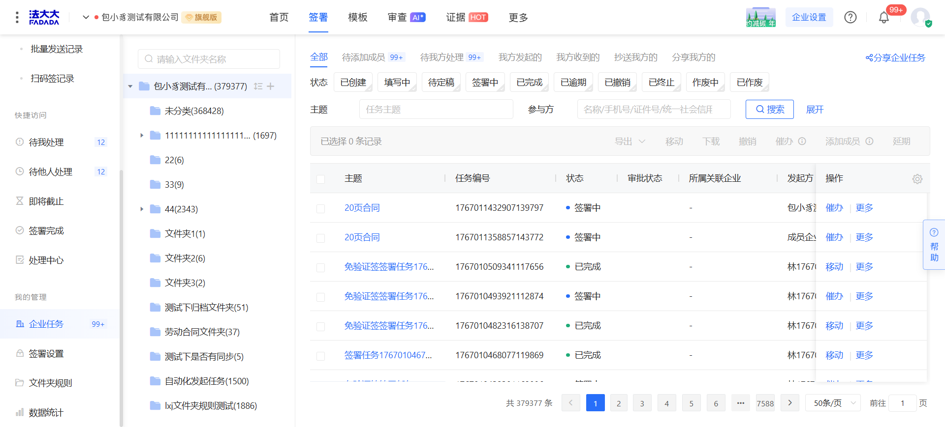 (2)待我方处理:待企业方处理的签署任务(待填、待签、待定稿)。可直接筛选“待我方处理“的任务