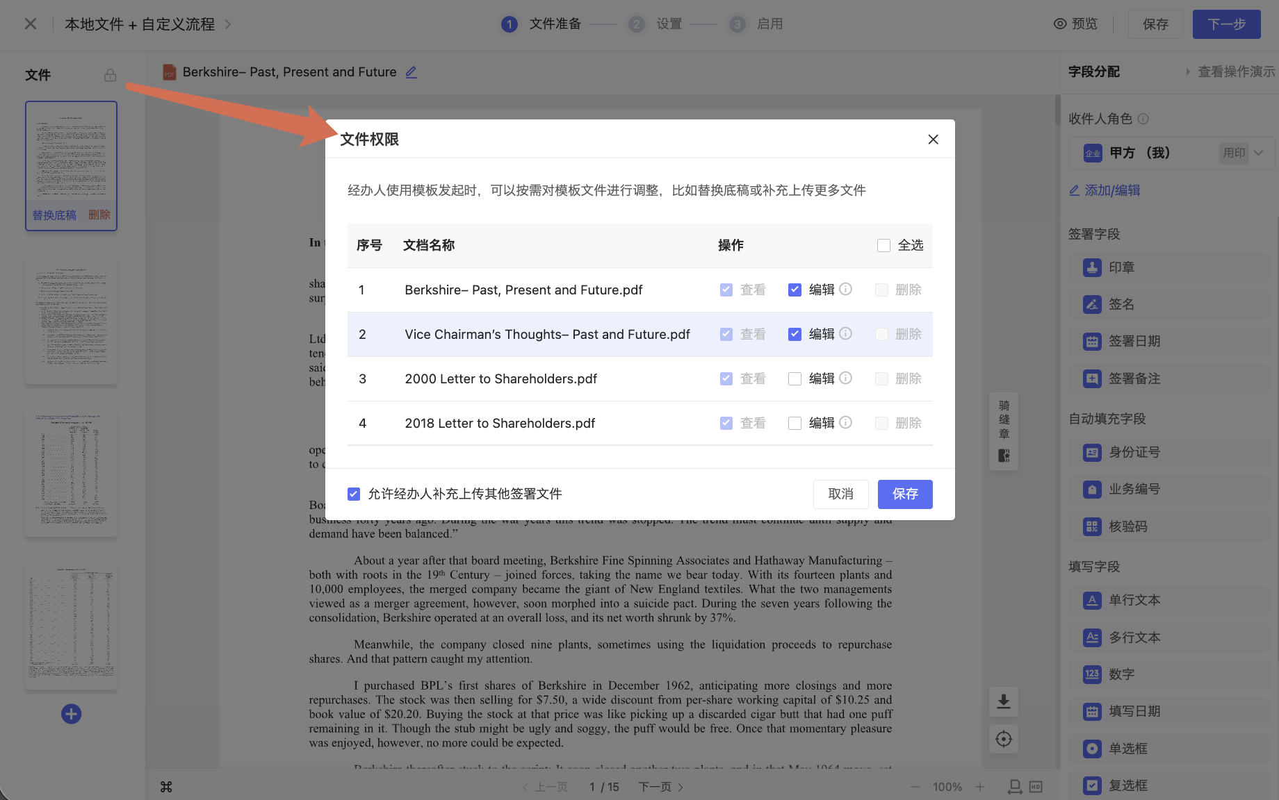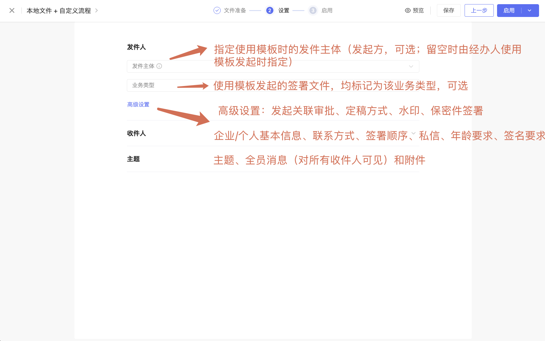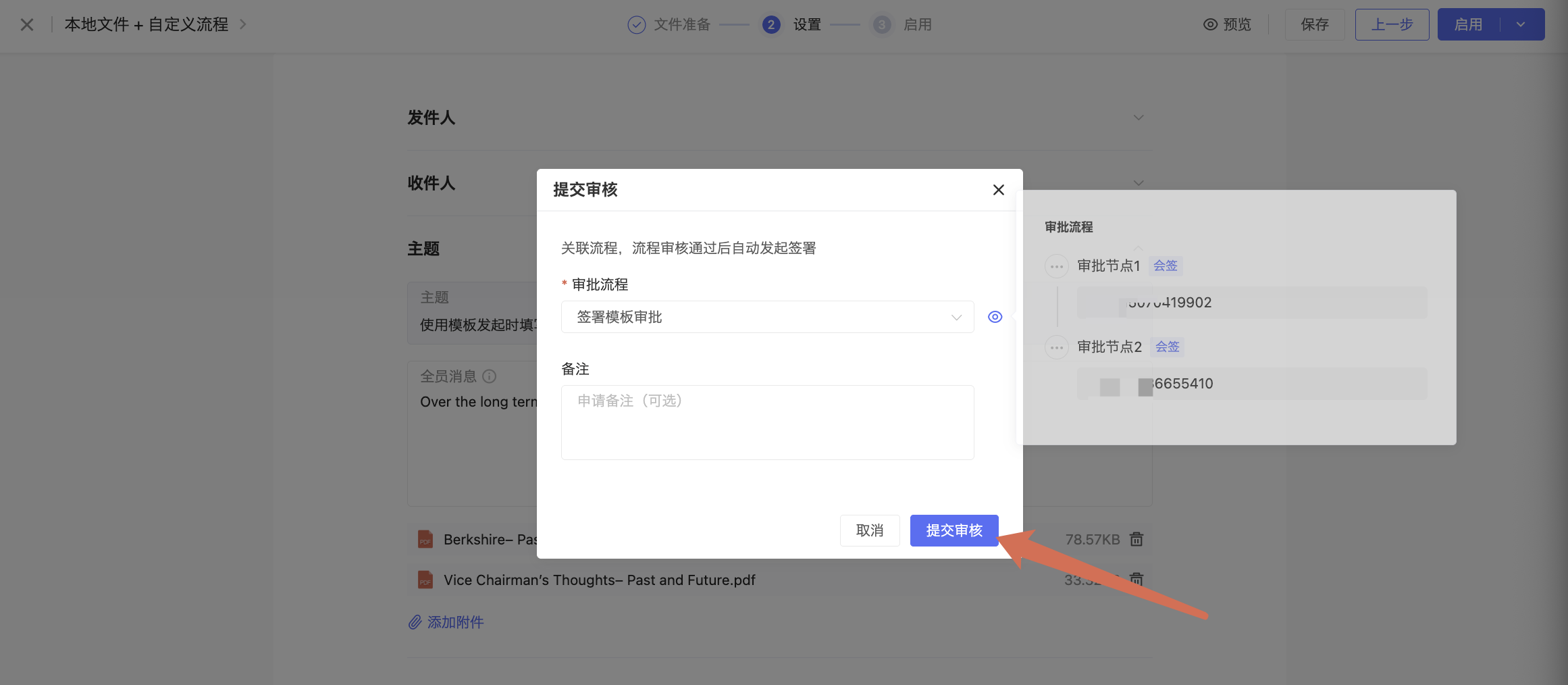 可以同时指定需要在发送前填写的字段(可选),发送前将会引导你填充文件字段后提交发送或审批: