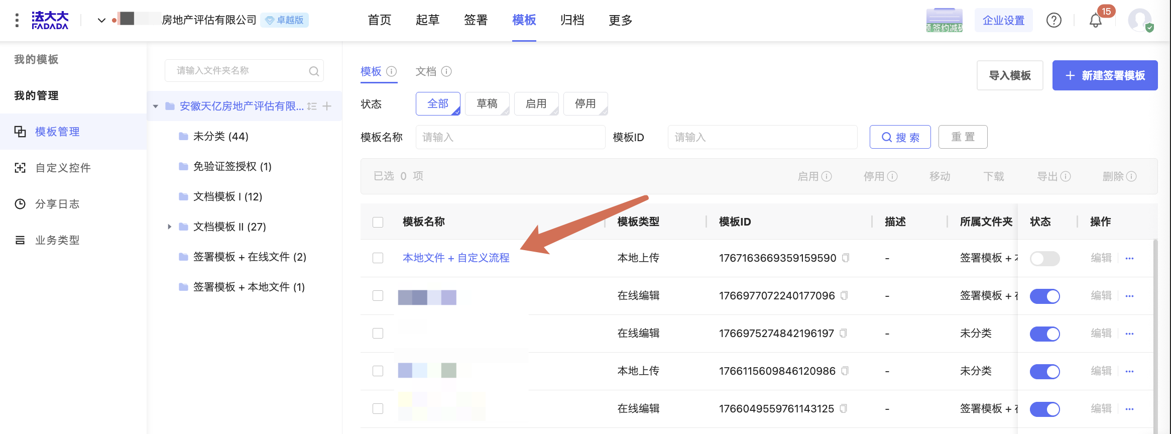 至此,经办人在发起签署时,就可以选择分配给TA且已启用的签署模板了。