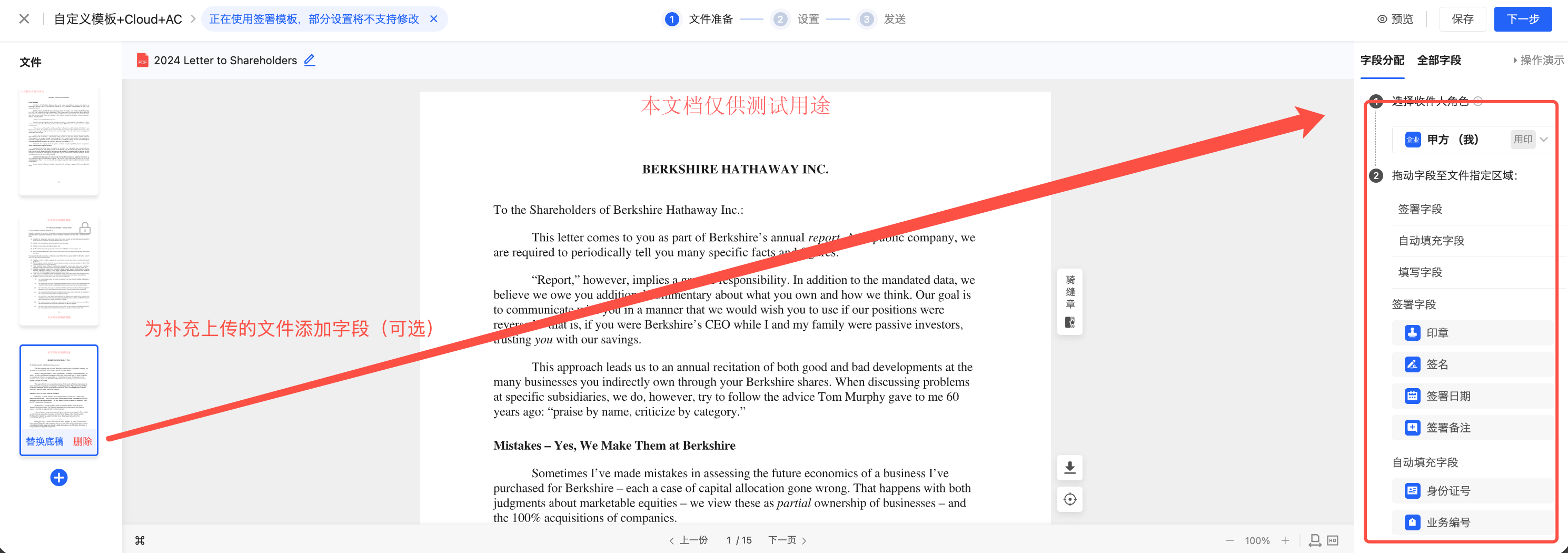 如何允许经办人在使用签署模板时替换文件底稿或补充上传其他签署文件