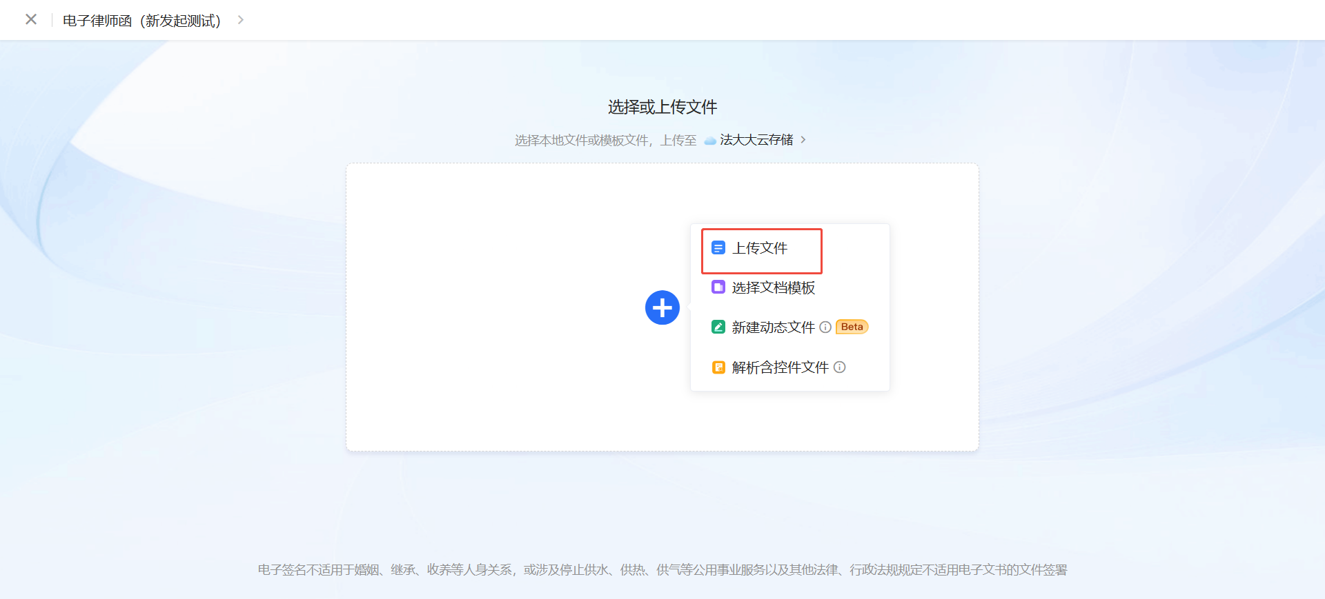 (2)在文档这里,上传您的电子律师函文件。