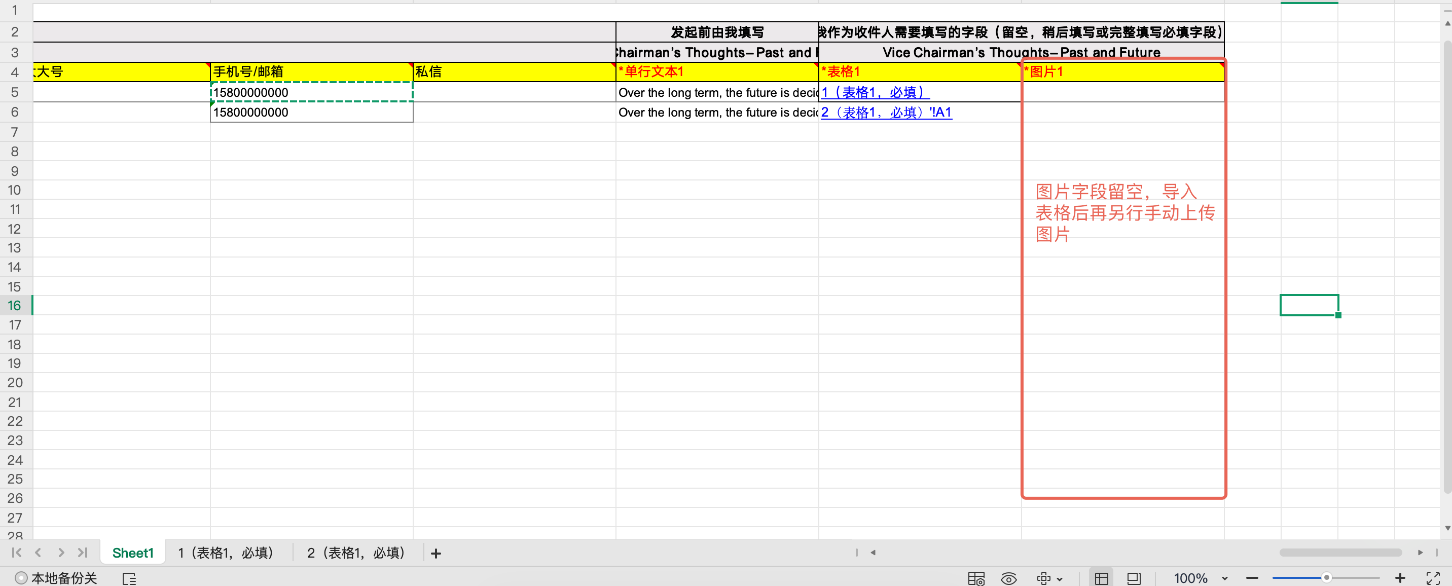 图片字段留空,导入表格后再另行手动上传图片: