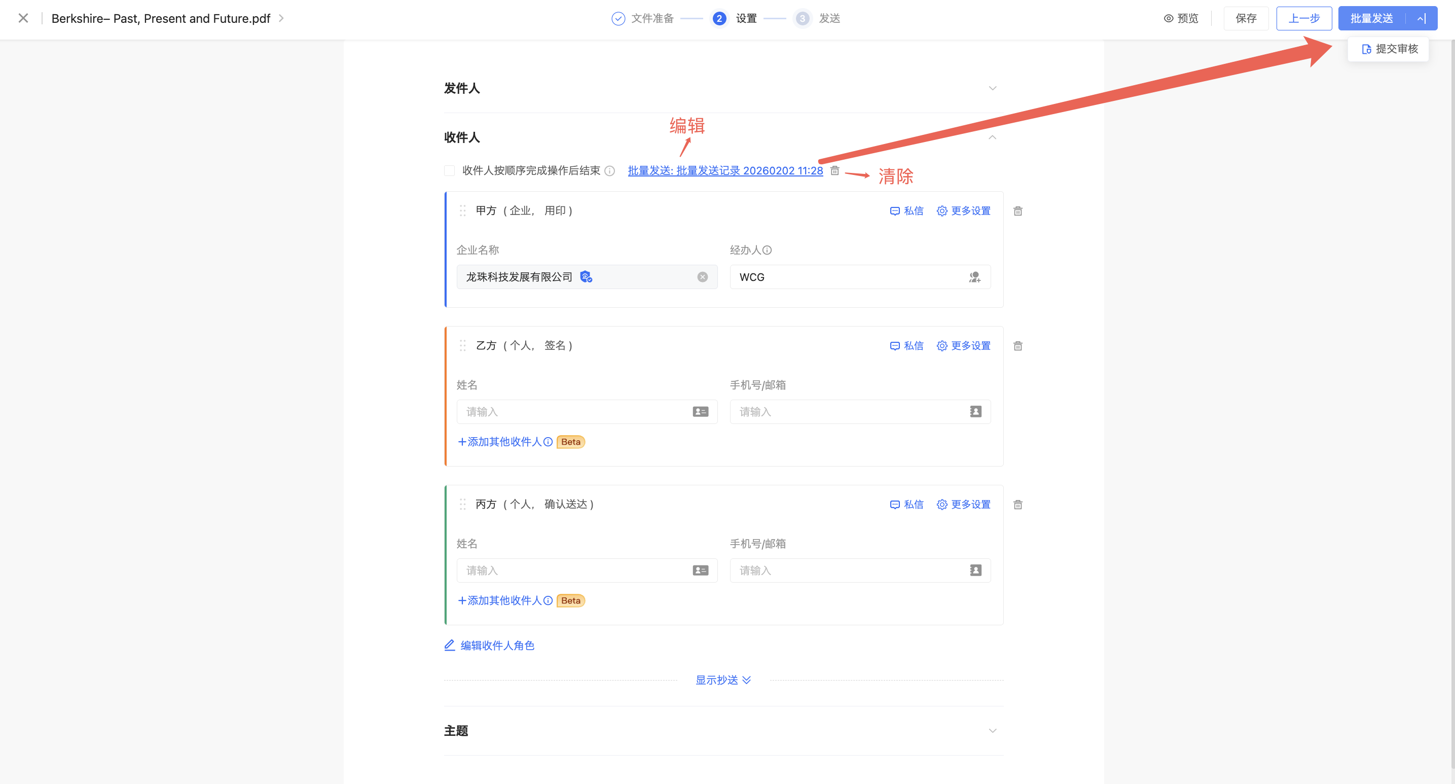 批量发送或提交审核