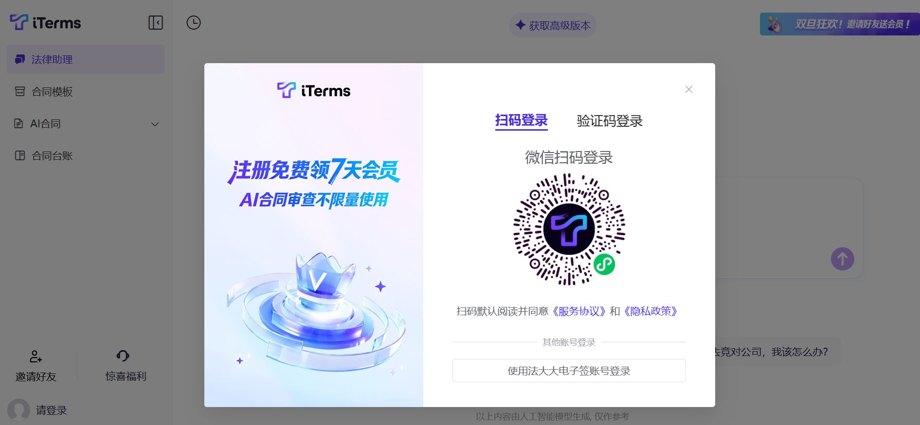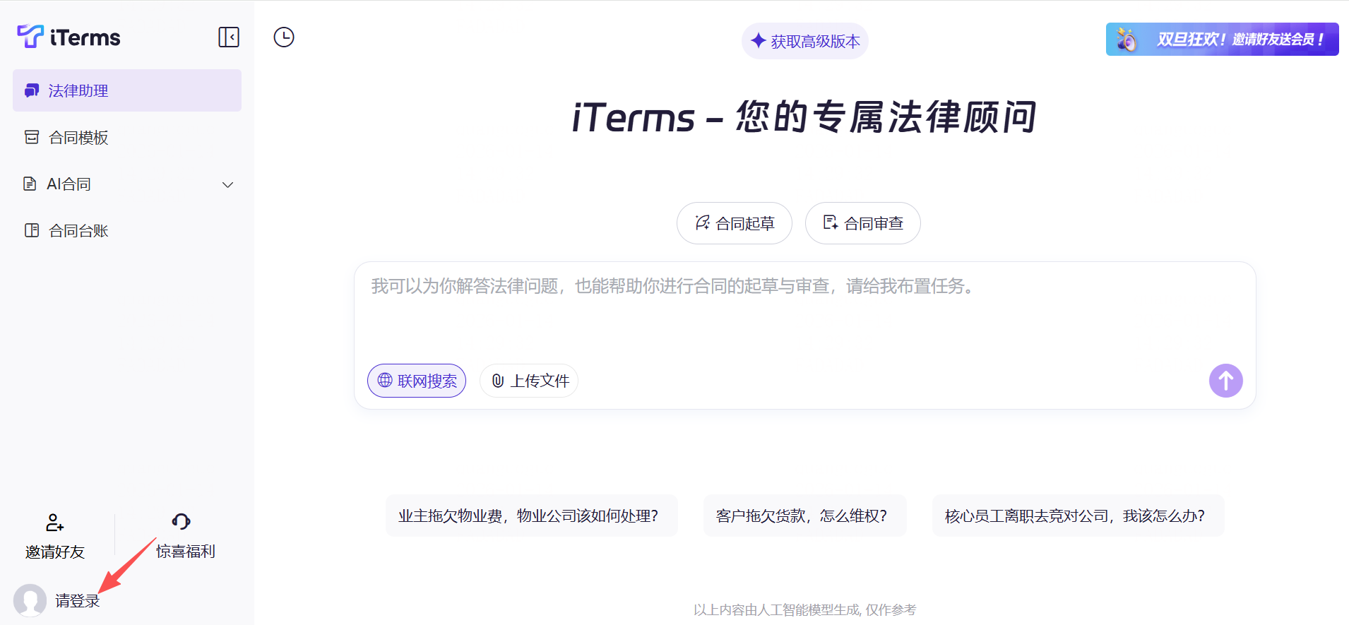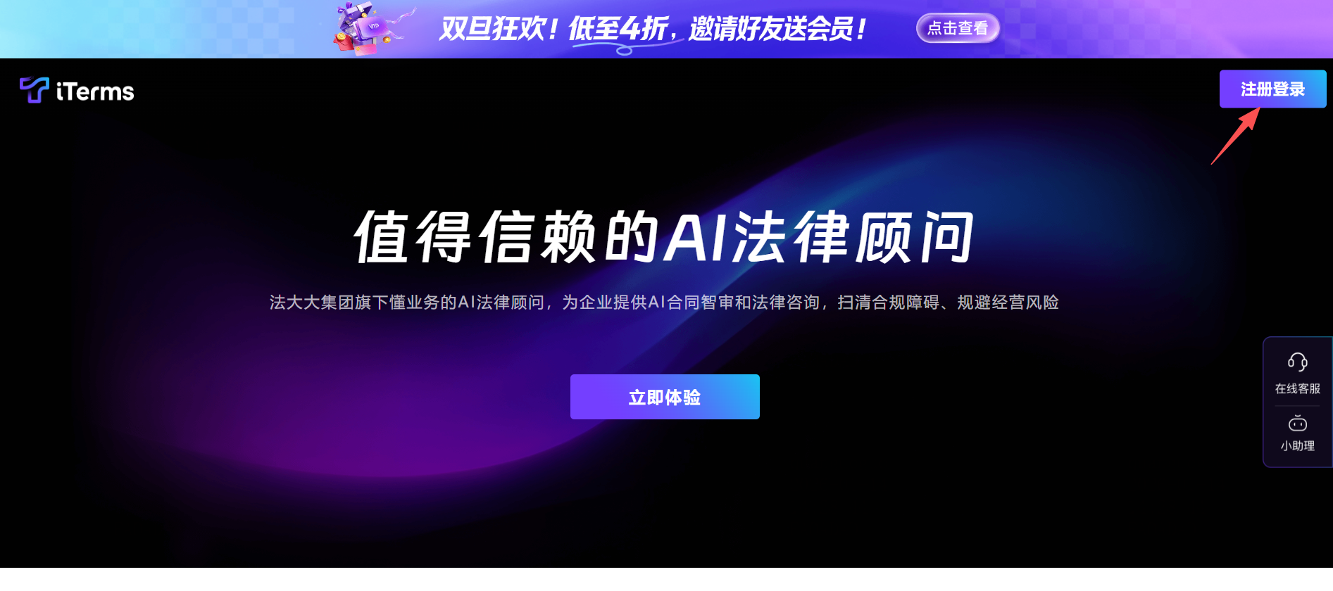 操作:访问iTerms官网,点击账号注册登录。