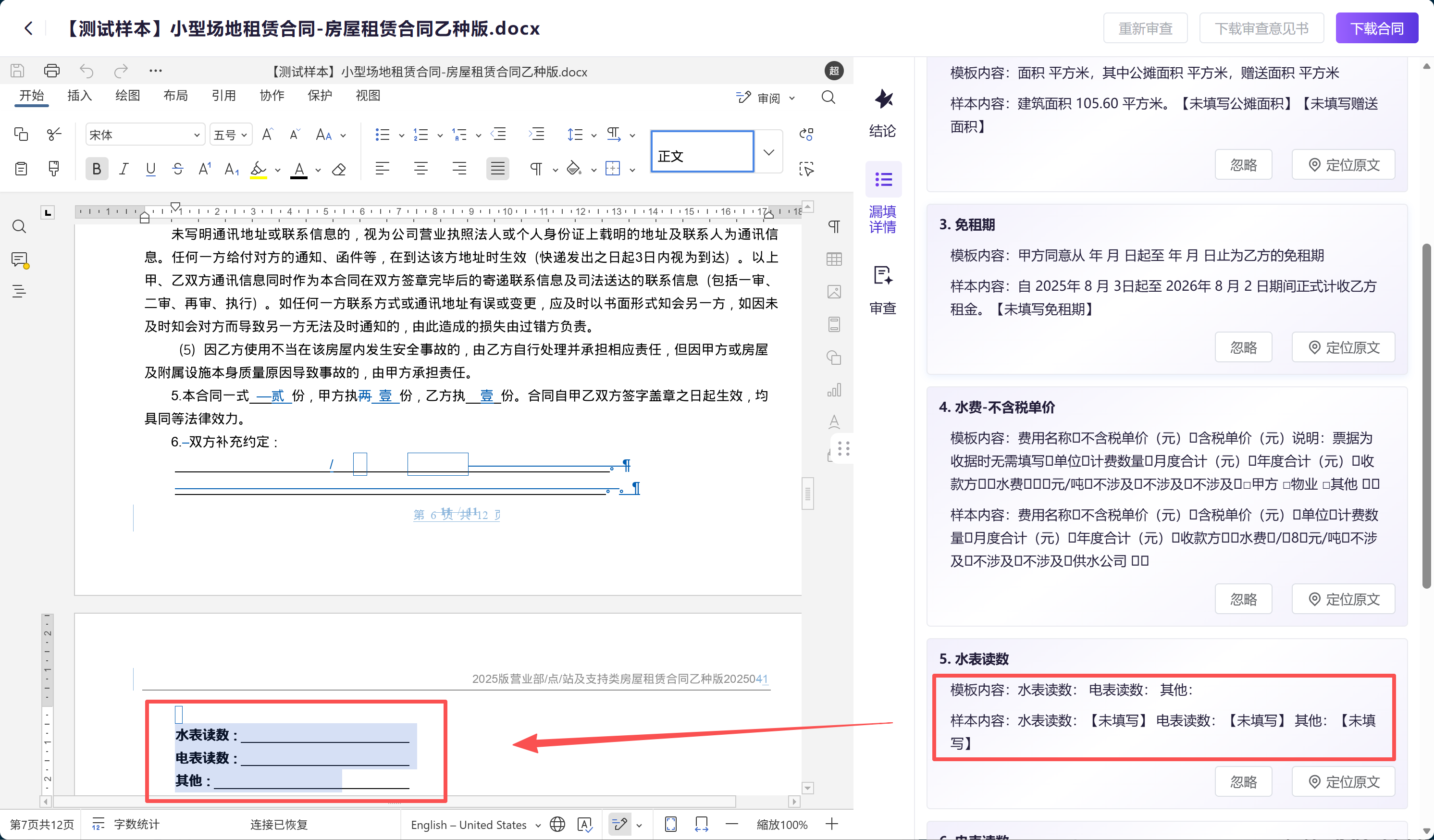 漏填检查: 检查送审稿是否遗漏缺失“标准合同模板”的相关内容。