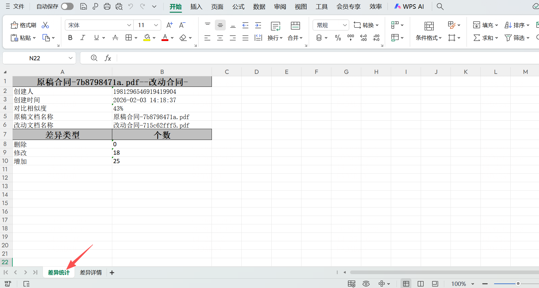差异结果(包含差异统计与差异详情)