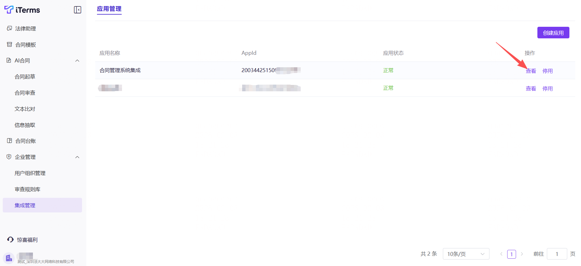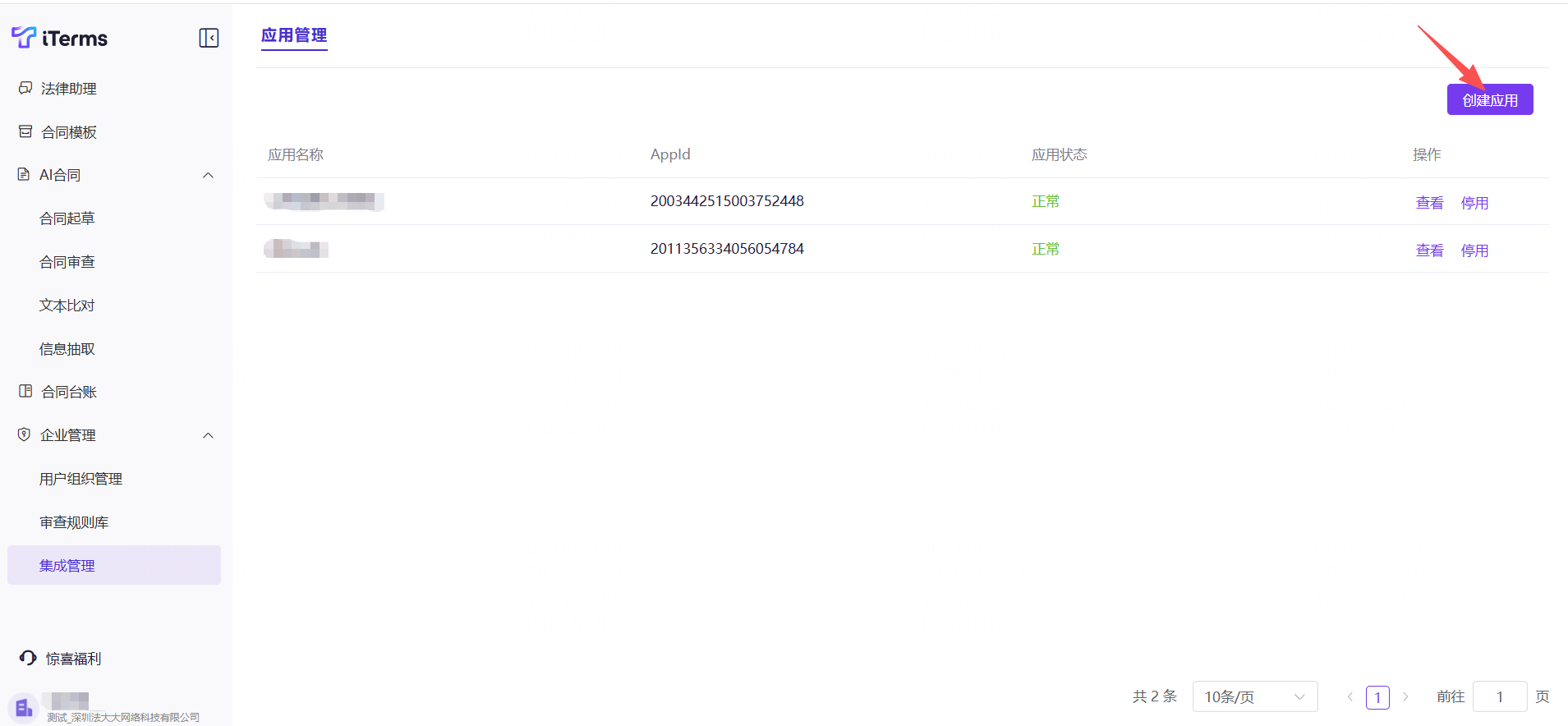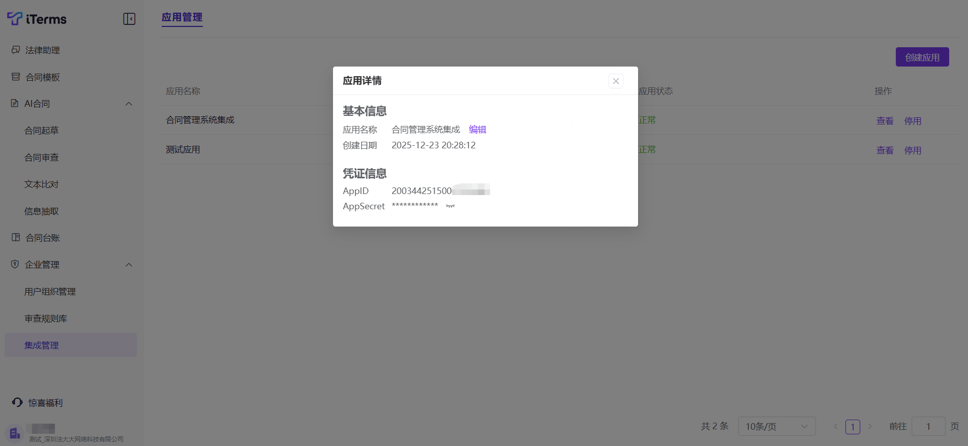 一、功能介绍:支持创建集成应用,作为调用iTerms 开放API的凭证使用。