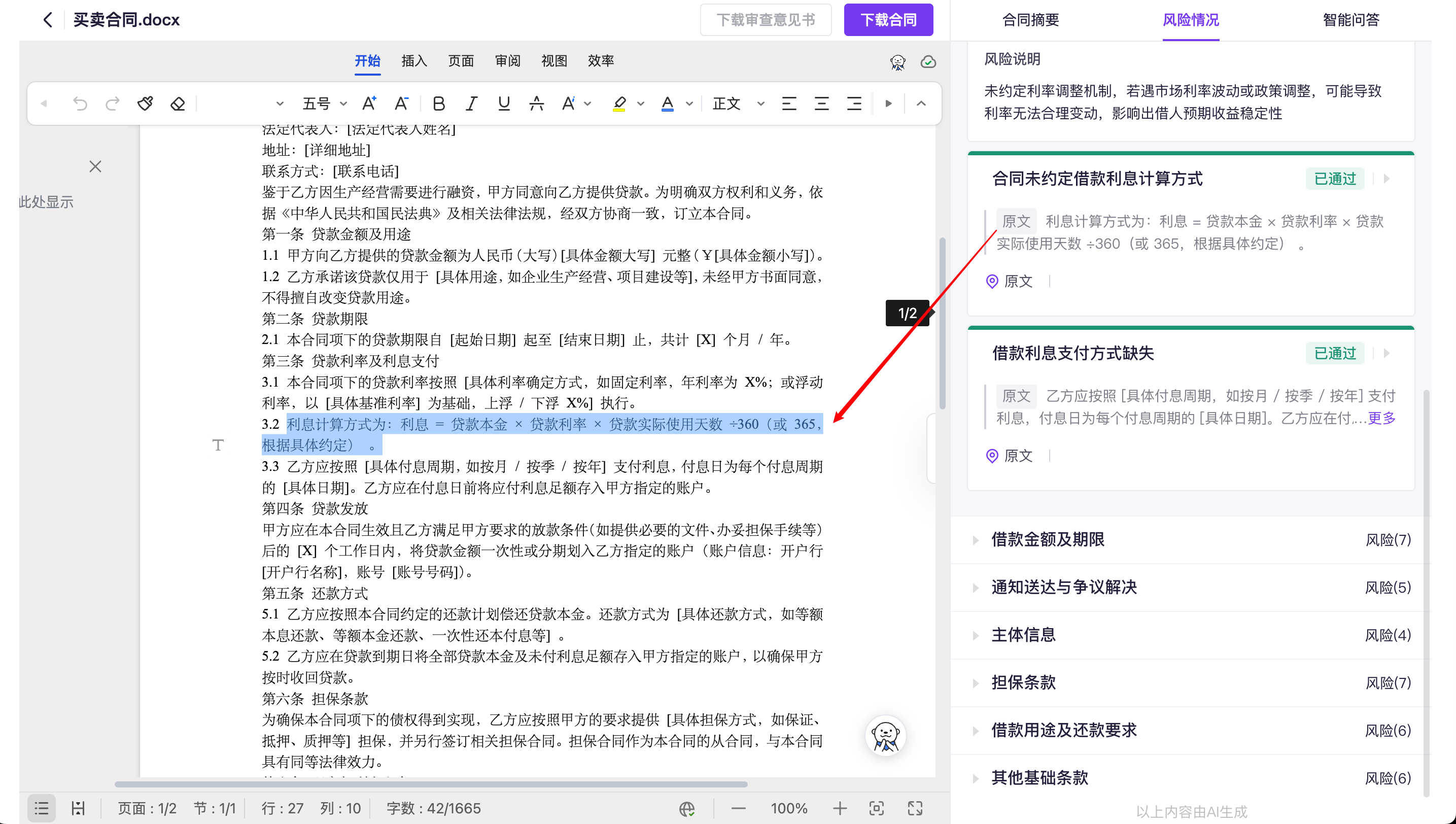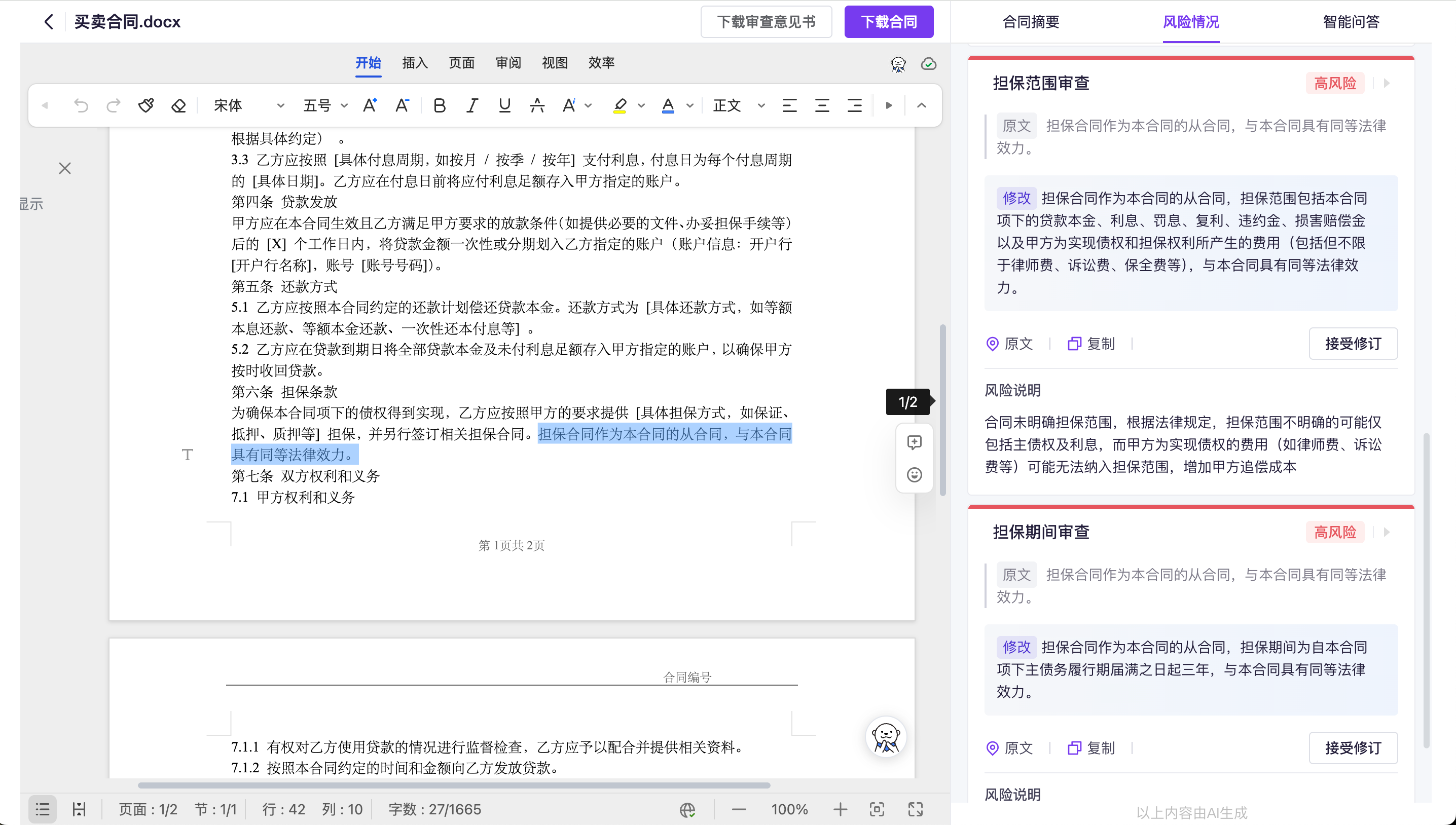 贴近业务:通过上下文关联,实现关联条款审查,提升修改建议的实用性。