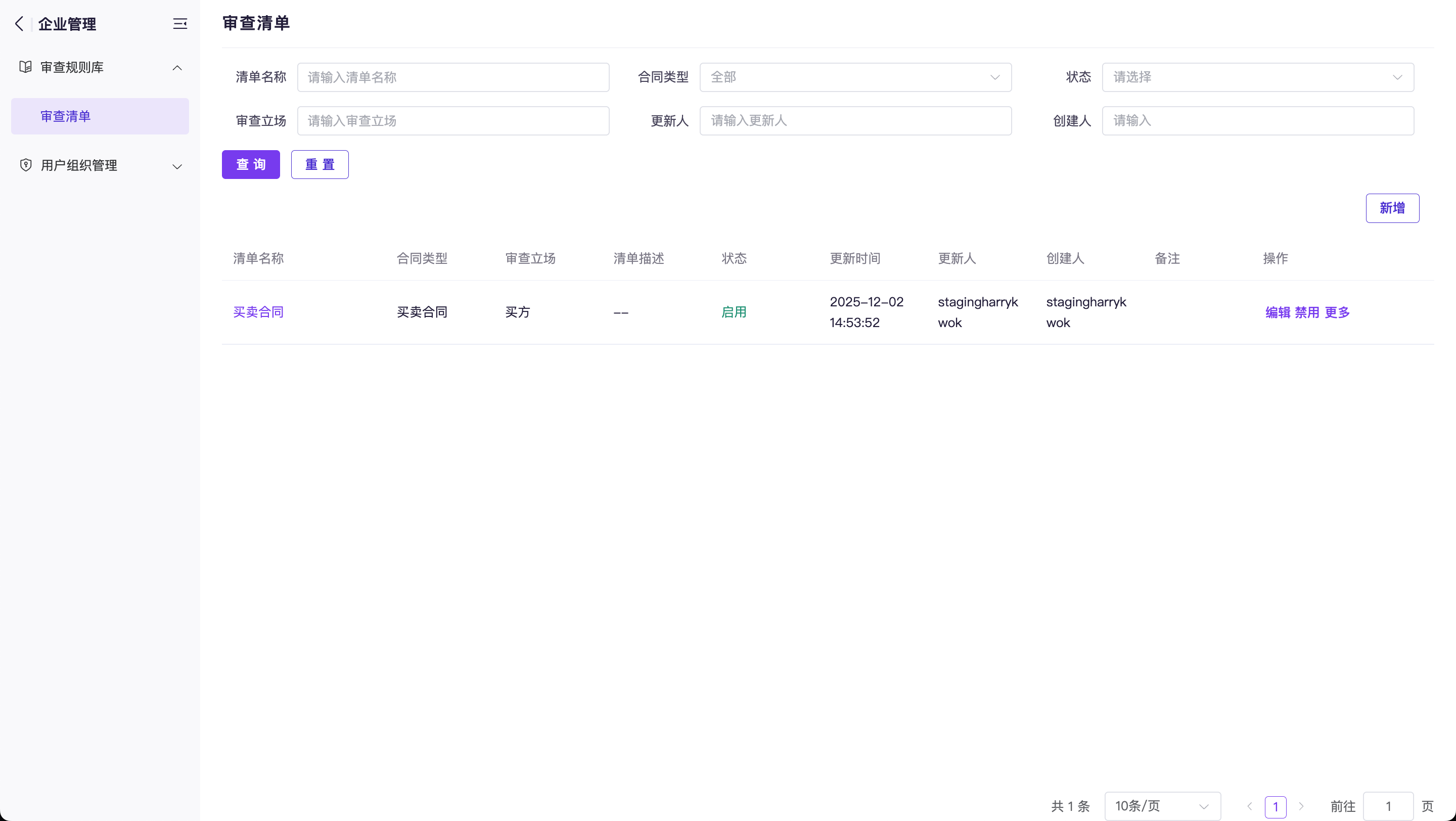企业自定义审查规则 | 支持[企业法务]维护企业级自定义审查规则,并通过角色权限管控实现法务与各部门协同维护,以满足企业个性化审查的需求,提升SaaS用户的黏性。 |
