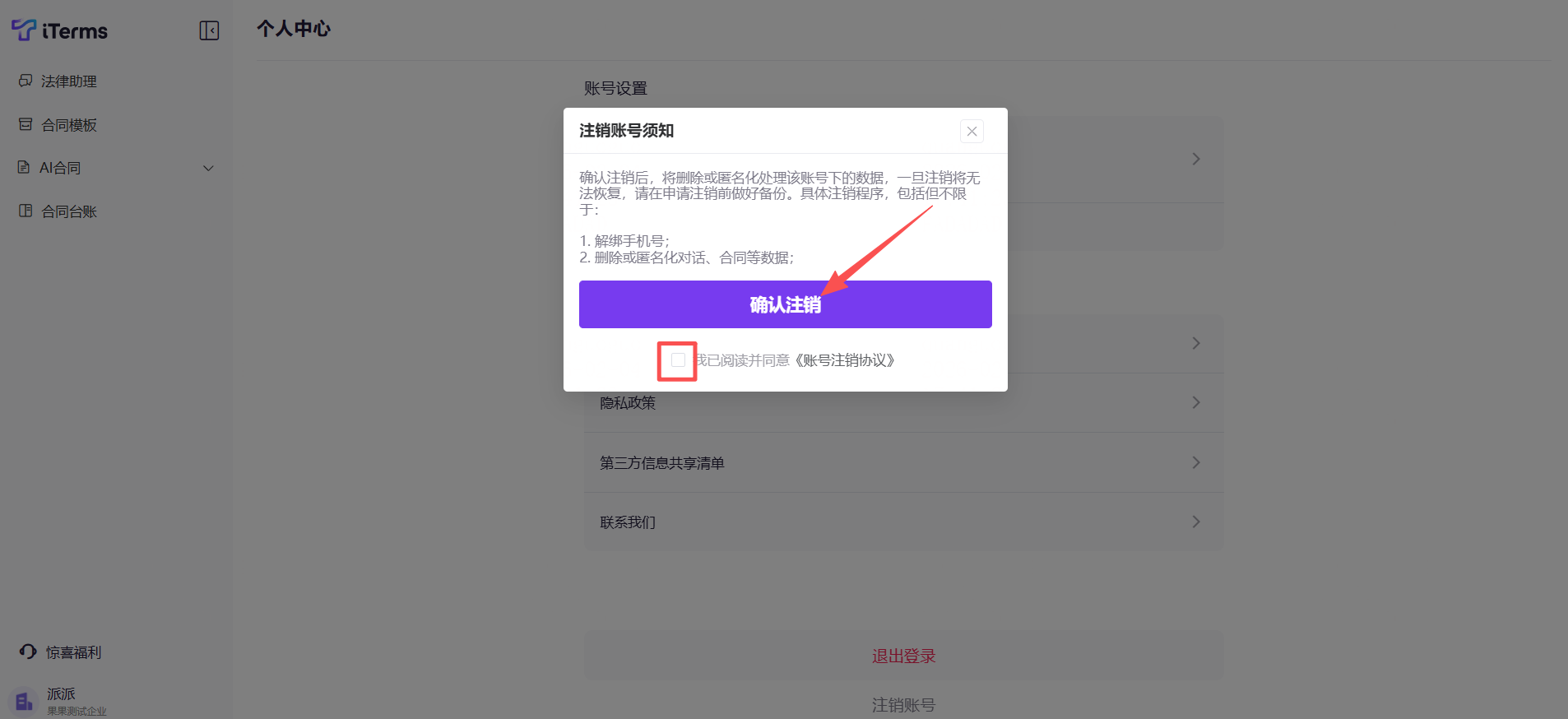 3)勾选"我已阅读并统一《账号注销协议》"后,点击"确认注销"即可。